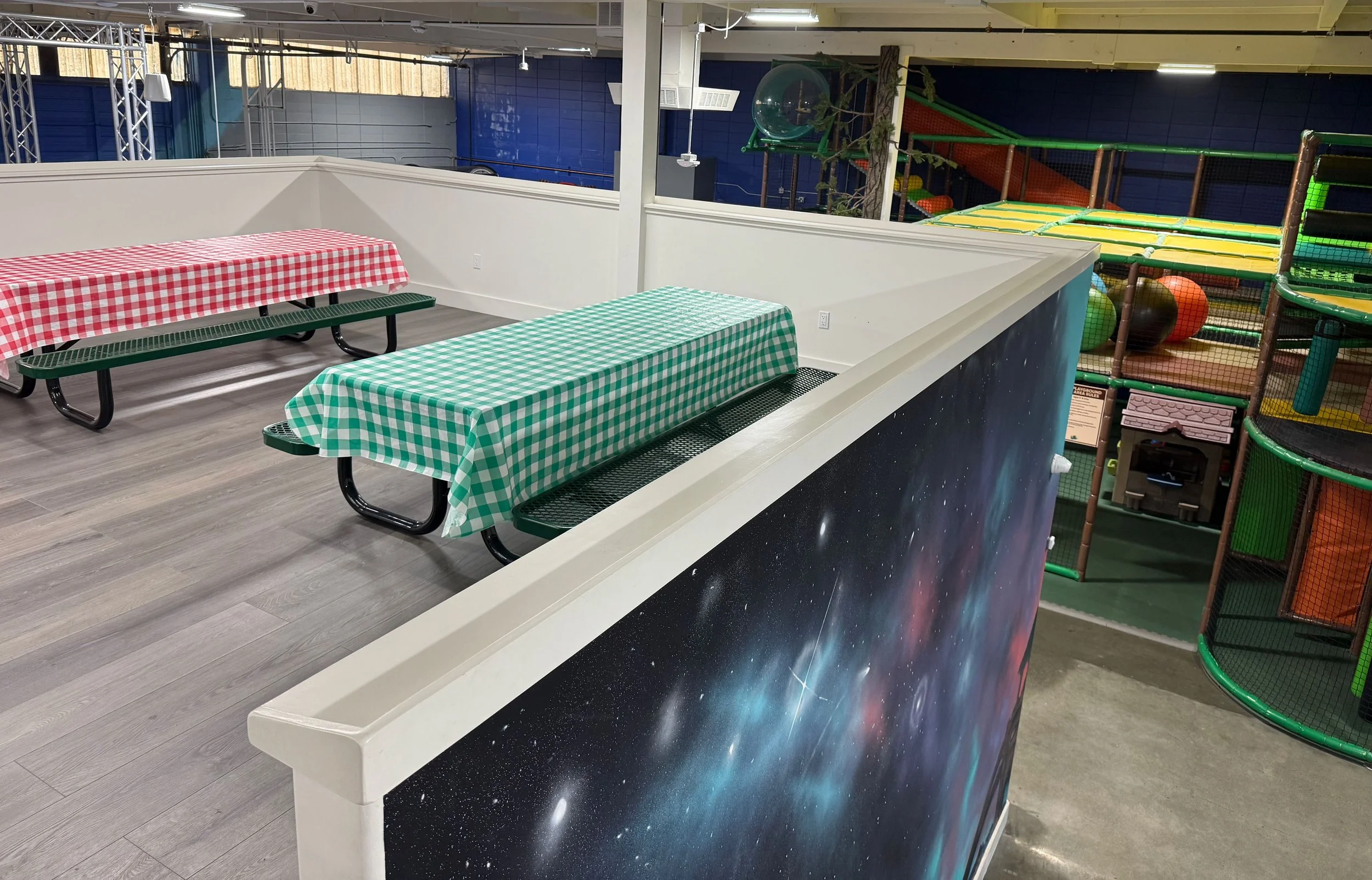 THE PARTY HOST WILL ARRIVE 15 MINUTES BEFORE THE REST OF THE GUESTS TO DROP OFF ANY PARTY SUPPLIES AND HANDLE ANY LAST SECOND DETAILS. WHEN THE REST OF THE GUESTS ARRIVE WE WILL DO OUR BEST TO GET THEM CHECKED IN ASAP. IF THEY HAVE FILLED OUT THE WAIVER ONLINE THAT WILL HELP WITH THE WAIT. AFTER EVERYONE IS CHECKED IN THEY WILL HAVE APPROXIMATELY 2 HOURS OF PLAYTIME BEFORE YOIUR TABLE/ROOM RESERVATION. YOU WILL HAVE 45 MINUTES AT THE TABLE OR IN THE ROOM FOR EATING AND SINGING HAPPY BIRTHDAY. IF MORE GUESTS THAN THE PACKAGE INCLUDES ARRIVE THE DAY OF, YOU WILL RECEIVE AN ADJUSTED INVOICE.